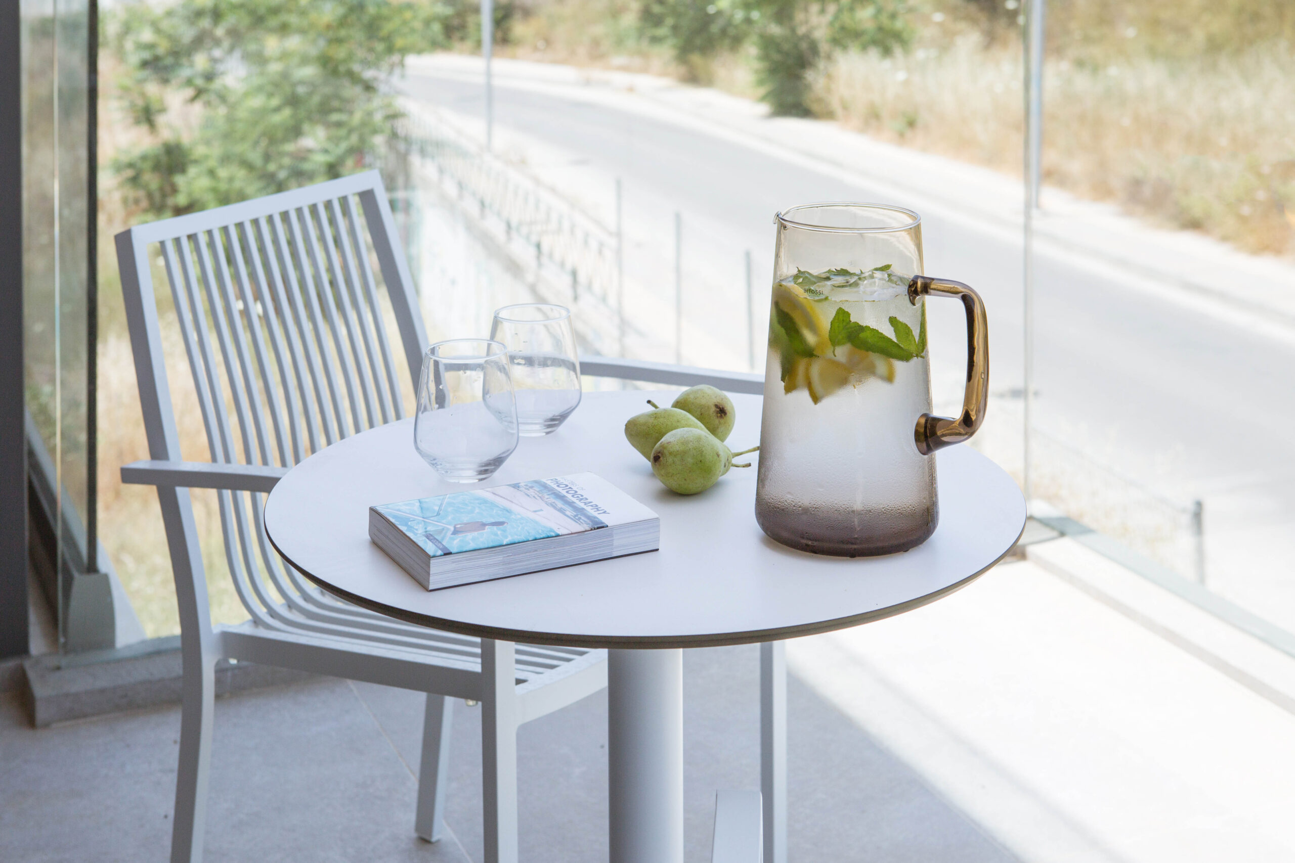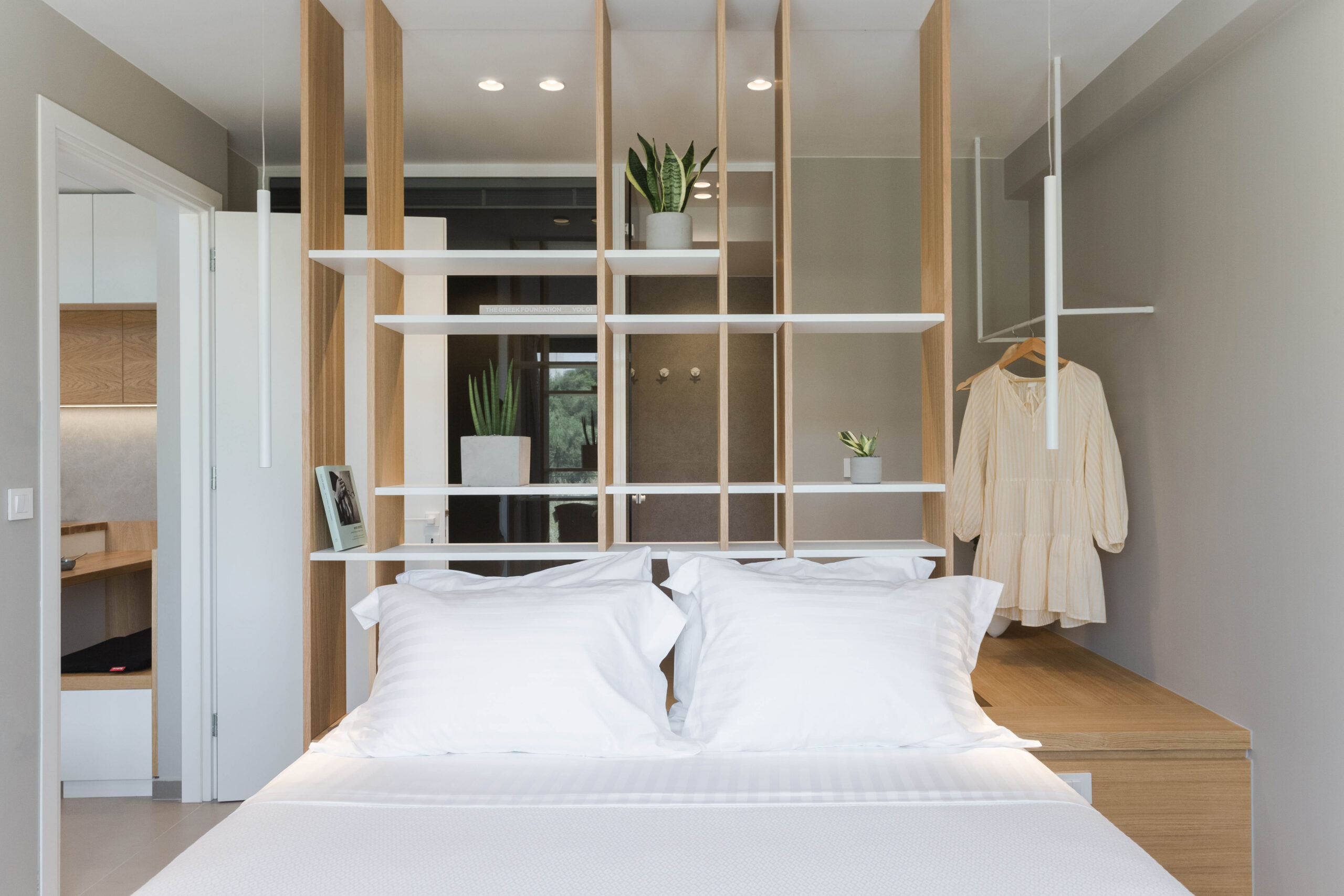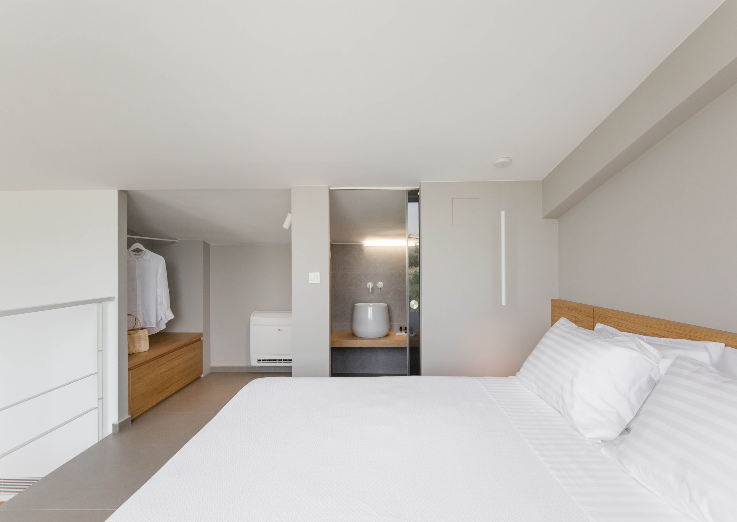 Our Deluxe Suites are the epitome of comfort and style. Suite 105 is a spacious and elegantly appointed suite that offers a separate living room, two bedrooms at different floors but also a balcony with garden and city view. The ground-floor bedroom boasts a king-size bed and a smart TV, while the living room is furnished with a comfortable sofa and an additional smart TV. Guests can also enjoy a fully equipped kitchen and a luxurious bathroom with a spacious hot tub.